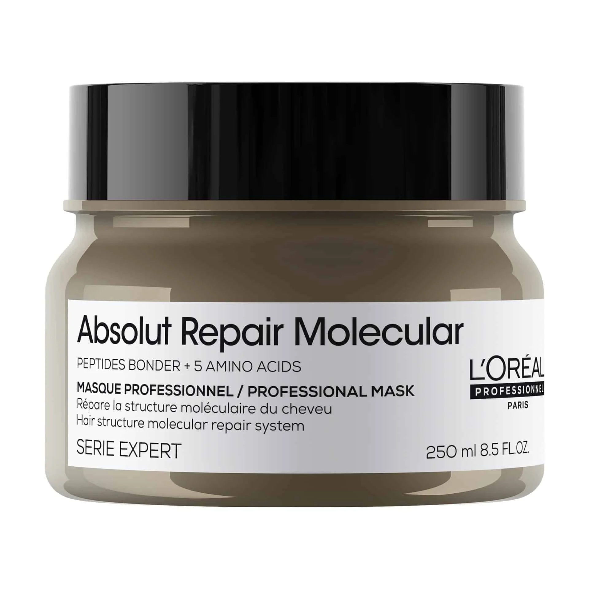 Mascarilla Absolut Repair Molecular, repara daños y fortalece el cabello, transforma instantáneamente & repara a nivel molecular.